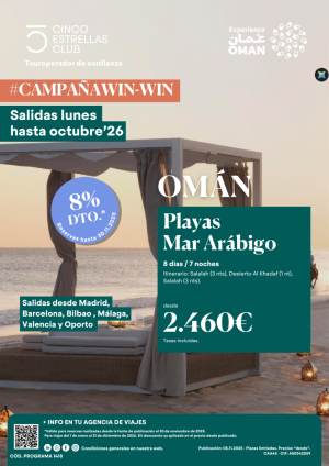 Win Win 8% dto hsta 30.11 Encantos de Omán 8 ds/7ns dsd 2.590€ sal. hsta oct'26 dsd Mad,Bcn,Bio,Agp,Vlc,Opo